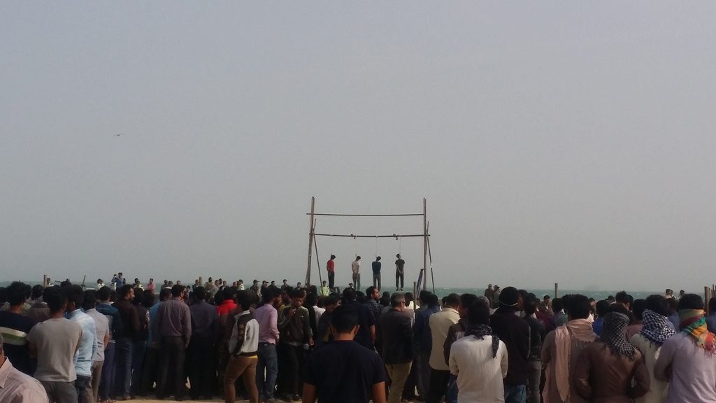 صبح امروز، چهار زندانی متهم به “قتل و تجاوز به عنف” دربلوار ساحلی شهرقشم در ملاءعام به دار آویخته شدند.