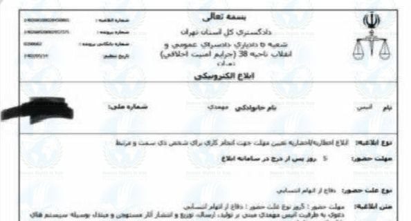 براساس ابلاغیه صادره توسط بازپرس شعبه ۵ دادسرای ناحیه ۳۸ تهران، مقرر شده تا انیس محمدی، ظرف مدت ۵ روز برای ارائه دفاعیات خود در برابر اتهامات (تولید، ارسال، توزیع و انتشار آثار مستهجن و مبتذل به وسیله سیستمهای رایانهای و مخابراتی) به آن دادسرا مراجعه کند.