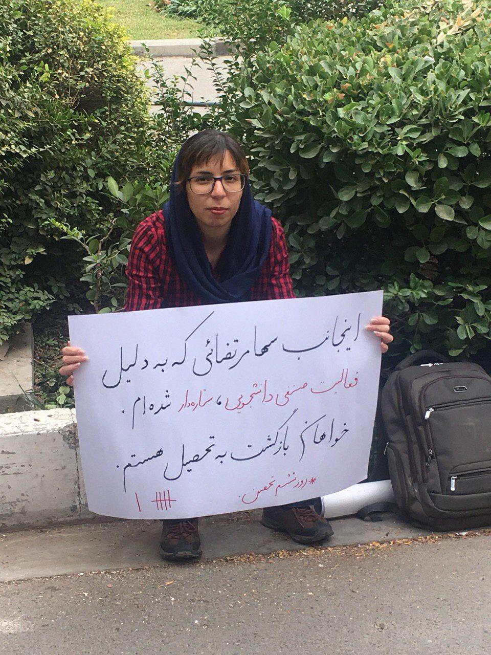 به گزارش حقوق بشر در ایران, امروز یکشنبه ۲۸ مهر ماه ۱۳۹۸, ششمین روز از تحصن سها مرتضایی, دانشجوی محروم از تحصیل که با رتبه ۱۰ کنکور سراسری به دلیل فعالیتهای صنفی دانشجویی ستاره‌دار شد در مقابل دانشگاه تهران تحصن کرد.