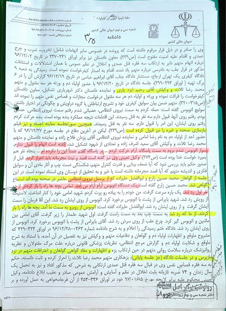 لازم به توضیح است قبلا متن لایحه دفاعیه و درخواست اعاده دادرسی وی به دیوان عالی کشور نیز منتشر شده بود که علیرعم وجود ادله و تعداد زیادی شاهد جدید دال بر بیگناهی متهمُ این درخواست رد شده است”.