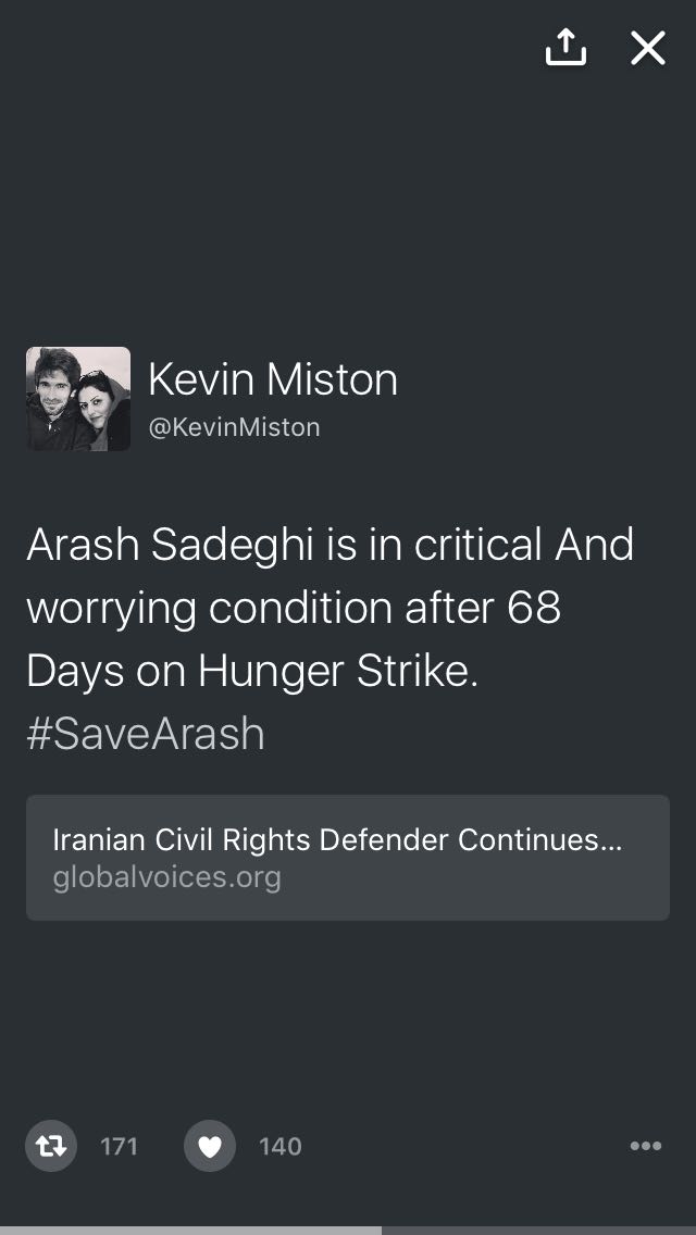 شخصیتها و خبرگزاریهای خارجی و نمایندگان مجلس شورای اسلامی پس از ترند جهانی آرش صادقی در توییتر واکنش نشان دادند. به گزارش حقوق بشر در ایران، اولین واکنش را بیبی سی جهانی در خبری که در توییتر خود منتشر کرده بود به وضعیت پرونده آرش صادقی اشاره داشت. یکی دیگر از حمایتها واکنش سناتور کانادایی لیندا فرام بود که در توییتر خود اعلام کرد در این شرایط من را در کنار خود بدانید. با این حال که واکنشهای جهانی در حمایت از اعتصاب غذای آرش صادقی ادامه دارد، اما مسئولین قوه قضاییه همچنان از پاسخگویی به خواستههای این زندانی سر باز میزنند. در همین حال چندین تن از نمایندگان مجلس در مصاحبه با تارنگار حقوق بشر در ایران، قول پیگیری وضعیت این زندانی سیاسی را دادهاند. حسینعلی حاجی دلیگانی نماینده دهم مجلس شورای اسلامی از حوزه انتخابی شاهین شهر اصفهان اعلام کرد که پیامکهای را در رابطه با این موضوع دریافت کرده و در حال پیگیری است. غلامرضا شرفی چهره اصولگرا و نمایندهٔ دورهٔ دهم از حوزهٔ انتخابیهٔ آبادان در استان خوزستان با اعلام اینکه جمهوری اسلامی برای هیچ یک از انسانها نمیخواد پرونده سازی کند و قول پیگیری وضعیت این زندانی را داد.
