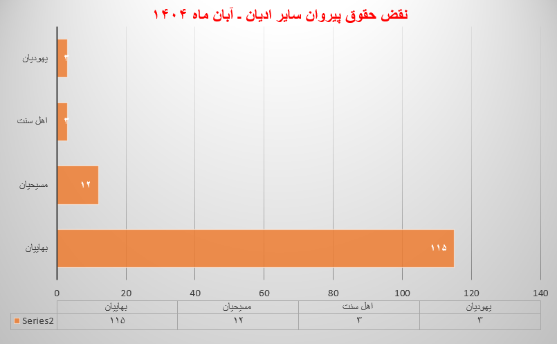 حقوق بشر در ایران ـ گزارش پیش رو شامل اطلاعات آماری از نقض حقوق پیروان سایر ادیان در ایران، تا پایان آبان ماه ۱۴۰۴ تنظیم شده و این گزارش به صورت آماری – تحلیلی ارائه میشود، مسلماً به دلیل عدم اجازه دولت ایران به مدافعان حقوق بشر جهت فعالیت به خصوص در حوزه گزارشگری، نقض حقوق بشر و همین طور ممانعت از گردش آزاد اطلاعات و به رسمیت نشناختن حوزه مستقل در فعالیتهای مدنی از سوی دولت ایران، در حال حاضر مسئله گزارشگری، امری دشوار و خطیر با محدودیتهای فراوان است.