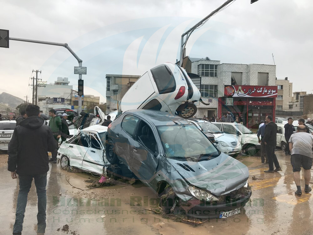 سیلاب در شیراز زمانی قربانی گرفت که براساس تصاویر منتشر شده، خودروهای بسیاری در دروازه قرآن این شهر در مسیر سیل قرار گرفتند به طوری که مسیل خروشان این خودروها را با خود برد باعث تصادف شدید آنها شد.