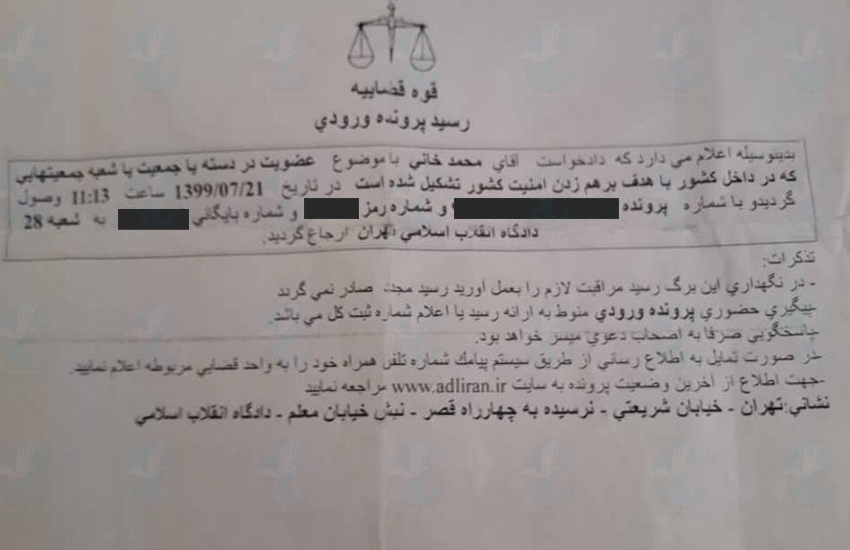حقوق بشر در ایران، در تاریخ ۱۲ آبان ماه ۱۳۹۹، با انتشار گزارشی، تداوم بازداشت و بلاتکلیفی محمدخانی و ارجاع پرونده وی به شعبه ۲۸ دادگاه انقلاب تهران را اطلاع رسانی کرده بود.