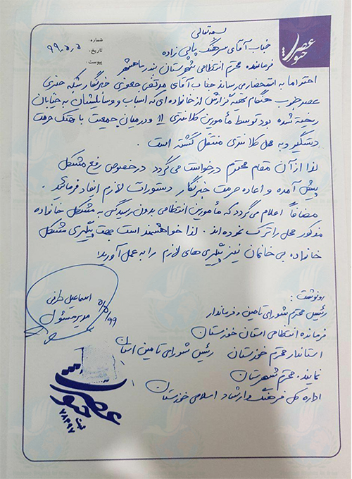 بازداشت این فعال رسانه ای به اتهام تهیه گزارش از وضعیت این خانواده بی سر پناه توسط ماموران کلانتری ۱۱ انتظامی ماهشهر صورت گرفته است.
