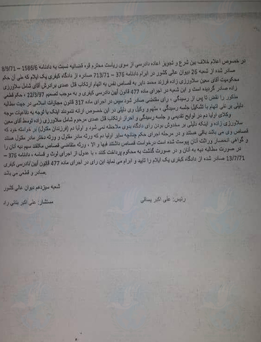 - بیشتر بخوانید: تائید حکم اعدام معین سلاورزی زاده پس از نزدیک به سه دهه بلاتکلیفی توسط دیوان عالی کشور
