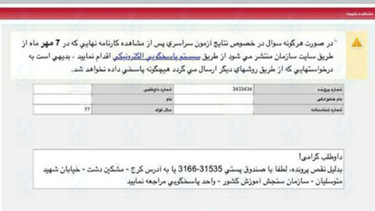 بیان نقص در پرونده برای صفحه اعلام وضعیت دانش آموزان بهائی در دانشگاهها و مراکز تحصیلی در ایران از طرف سازمان سنجش و یا حتی وزارت آموزش و پروش به منزله محرومیت آنها از ادامه تحصیل در هر مقطع تحصیلی که در آن تحصیل می کنند می باشد.