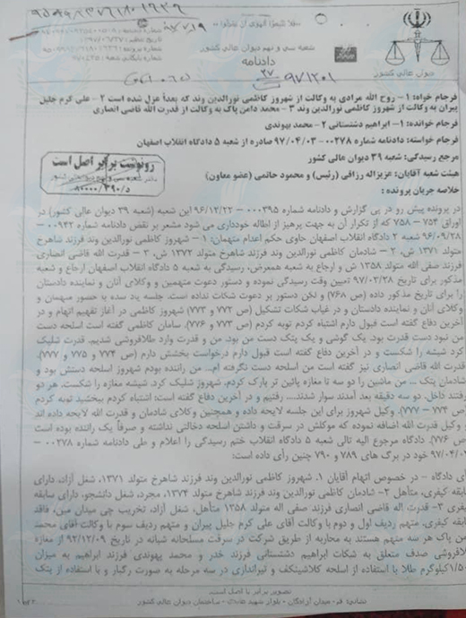 در ساعات پایانی دوشنبه ۷ مهر ماه ۱۳۹۹، حقوق بشر در ایران، با انتشار گزارشی، انتقال شهروز کاظمی نورالدین وند را به سلول انفرادی جهت اجرای حکم اعدام و تماس مسئولان اجرای احکام با خانواده این زندانی جهت انجام آخرین ملاقات اطلاع رسانی کرده بود.