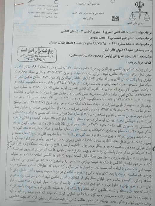به گزارش حقوق بشر در ایران، سحرگاه امروز چهارشنبه ۹ مهر ماه ۱۳۹۹، شهروز کاظمی نورالدین وند – فرزند: شاهرخ – متولد: ۱۳۷۱ – شغل: آزاد – متاهل و دارای یک فرزند، محبوس در زندان مرکزی « دستگرد » اصفهان با اتهام محاربه از طریق سرقت مسلحانه که پیش تر حکم اعدام وی توسط دادگاه انقلاب و دیوان عالی کشور تائید شده بود اعدام شد.