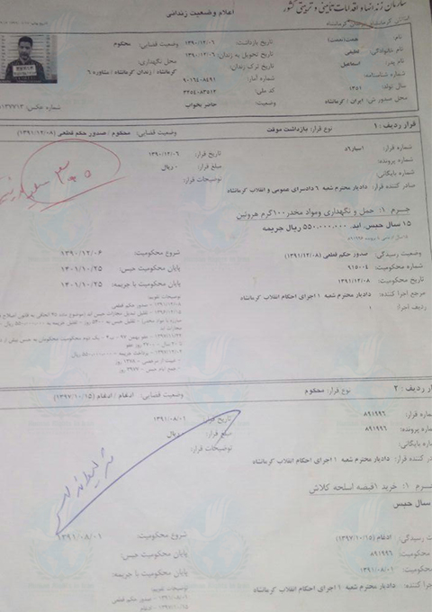 لازم به ذکر است, همت لطیفی, در تاریخ ۶ اسفند ماه ۱۳۹۰ به اتهام حمل و نگهداری ۱۰۰ گرم هروئین توسط ماموران امنیتی بازداشت شد و پس از طی مراحل بازجوئی و تفهیم اتهام به ترتیب به تحمل در تاریخ ۸ اسفند ماه سال ۱۳۹۱ به تحمل ۱۵ سال حبس تعزیری و پرداخت ۵۵۰ میلیون ریال جریمه نقدی محکوم شد. این حکم پس از ارجاع پرونده به دادگاه تجدید نظر استان کرمانشاه در تاریخ ۱۵ اسفند ماه ۱۳۹۶ عیناً تائید شد.