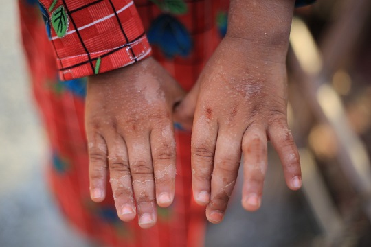 اهالی او را محمد صباحی صدا میزنند و محمد میگوید: “بسیاری از دخترانمان نیز همین بلا سرشان آمده؛ از روبرو دخترکی ۵ ساله که فایزه صدایش می زنند در حال آمدن است، مچ دستانش تا سر انگشت هایش پوست انداخته است”.