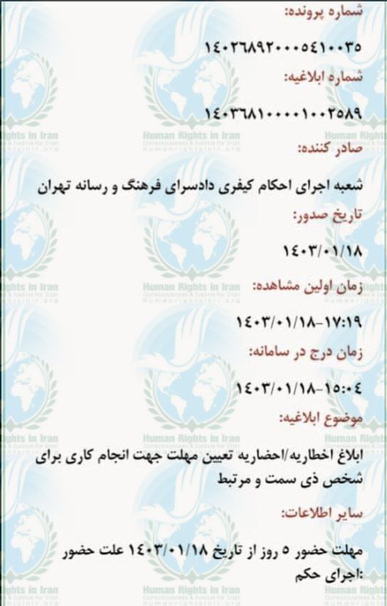 حقوق بشر در ایران ـ امروز سه شنبه ۲۵اردیبهشت ماه ۱۴۰۳، دانیال مقدم، در حال سپری کردن دوران حبس تعزیری خود است.