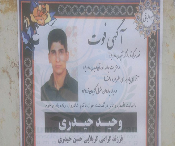 همزمان یک منبع مطلع گفت: «روستای زادگاه وحید حیدری، روستای تکیه، حوالی شازند است. ما به این روستا رفتیم و با بستگان نزدیک او حرف زدیم همه میگویند که او را در بازداشتگاه براثر ضربات باتوم کشتهاند. پلیس اینجا تکذیب کرده که به واسطه باتوم کشته شده و گفتهاند به دلیل حمل مواد مخدر دستگیر بازداشت و در بازداشتگاه خودکشی کرده. اما بستگان اش گفتند بسیار آدم شریفی بود و این وصلهها به او نمیچسبد نه اهل مواد بوده نه مصرف و نه فروش. نه فقط بستگان، بلکه با هرکسی که صحبت کردیم گفتند این انگ کثیفی است و به این جوان و خانواده اش نمیچسبد. میگفتند اینها به این انقلاب وفادار بودند کلی شهید و جانباز دارند و اهل این مسائل نبودند.»