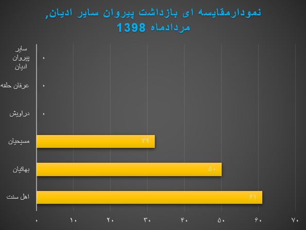 گزارش پیش رو دربردارنده اطلاعات آماری نقض حقوق پیروان سایر ادیان در ایران تا پایان مرداد ماه ۱۳۹۸ شمسی است. این گزارش بهصورت آماری-تحلیلی ارائه میشود، مسلماً به دلیل عدم اجازه دولت ایران به مدافعان حقوق بشر جهت فعالیت بهخصوص در حوزه گزارشگری نقض حقوق بشر و همینطور ممانعت از گردش آزاد اطلاعات و بالطبع به رسمیت نشناختن حوزه مستقل در فعالیتهای مدنی از سوی دولت ایران، در حال حاضر مسئله گزارشگری، امری دشوار و خطیر با محدودیتهای فراوان در ایران محسوب میشود.