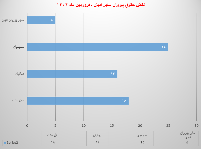 حقوق بشر در ایران ـ گزارش پیش رو شامل اطلاعات آماری از نقض حقوق پیروان سایر ادیان در ایران، تا پایان فروردین ماه ۱۴۰۴ است. این گزارش به صورت آماری – تحلیلی ارائه میشود، مسلماً به دلیل عدم اجازه دولت ایران به مدافعان حقوق بشر جهت فعالیت به خصوص در حوزه گزارشگری، نقض حقوق بشر و همین طور ممانعت از گردش آزاد اطلاعات و به رسمیت نشناختن حوزه مستقل در فعالیتهای مدنی از سوی دولت ایران، در حال حاضر مسئله گزارشگری، امری دشوار و خطیر با محدودیتهای فراوان است.