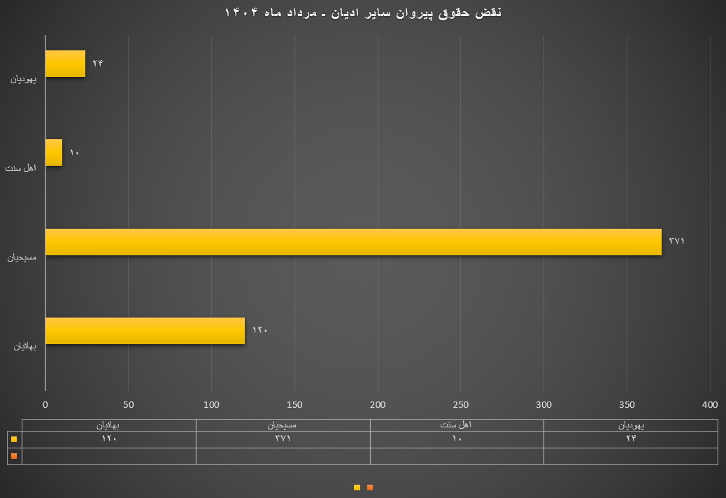گزارش پیش رو شامل اطلاعات آماری از نقض حقوق پیروان سایر ادیان در ایران، تا پایان مرداد ماه ۱۴۰۴ است. این گزارش به صورت آماری – تحلیلی ارائه میشود، مسلماً به دلیل عدم اجازه دولت ایران به مدافعان حقوق بشر جهت فعالیت به خصوص در حوزه گزارشگری، نقض حقوق بشر و همین طور ممانعت از گردش آزاد اطلاعات و به رسمیت نشناختن حوزه مستقل در فعالیتهای مدنی از سوی دولت ایران، در حال حاضر مسئله گزارشگری، امری دشوار و خطیر با محدودیتهای فراوان است.