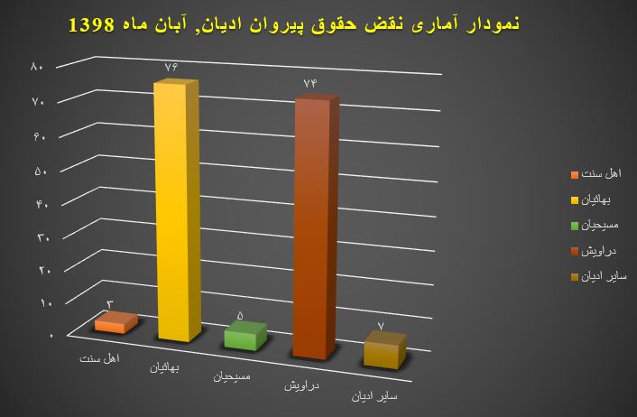 روند رو به ستیز با پیروان سایر ادیان در این ماه نیز ادامه داشت به گونهای که حقوق شهروندی آنها در موارد ذیل نقض گردید