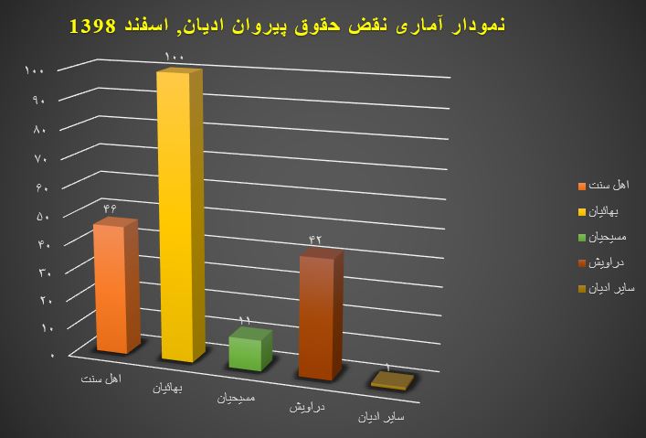 روند ستیز با پیروان سایر ادیان در این ماه نیز ادامه داشت به گونهای که حقوق شهروندی آنها در موارد ذیل نقض گردید
