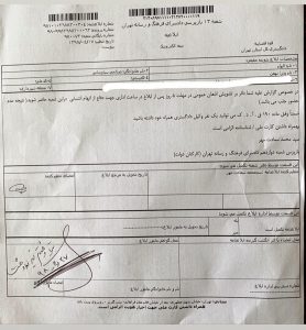 همچنین در متن ابلاغیه صادره از سوی شعبه ۱۲ دایره بازپرسی دادسرای فرهنگ و رسانه, اتهام منتسبه بر این فعال هنری “تشویش اذهان عمومی” عنوان شده است.