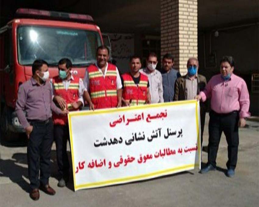 به گزارش حقوق بشر در ایران به نقل از دهدشت نیوز، روز یکشنبه ۲۷مهر ماه ۱۳۹۹، جمعی از شهروندان شاغل در آتش نشانی شهرستان دهدشت از توابع استان کهگیلویه و بویراحمد در مقابل ساختمان آتش نشانی این شهر تجمع اعتراضی برگزار کردند.