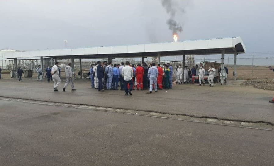 تجمع اعتراضی کارگران میدان نفتی آزادگان شمال