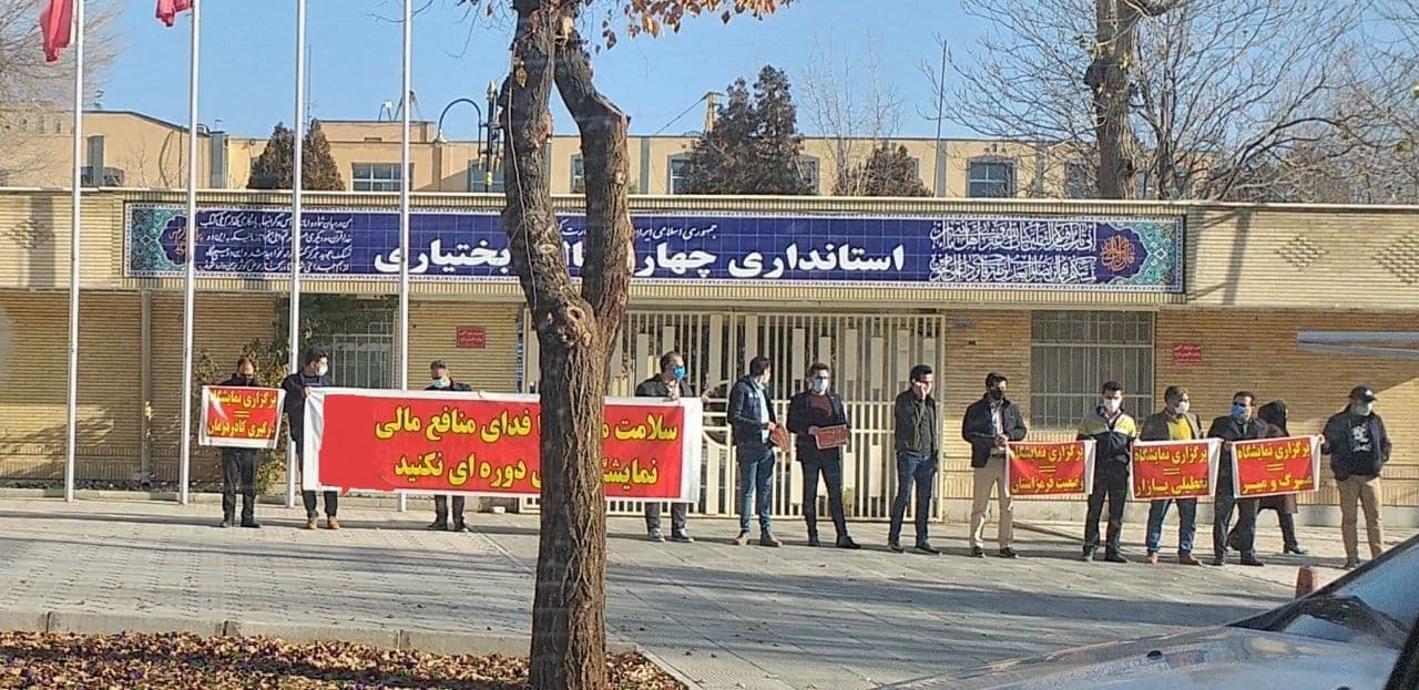 به گزارش حقوق بشر در ایران به نقل از اتحادیه آزاد کارگران ایران، امروز یکشنبه ۲۳ آذر ماه ۱۳۹۹، جمعی از کسبه استان چهارمحال و بختیاری در اعتراض به برگزاری نمایشگاه عرضه مستقیم کالا در این استان که منجر به کسادی بیش از پیش بازار کسب و کار و از سوی دیگر افزایش شیوع ویروس کرونا در این شهروندان می شود در مقابل درب ورودی استانداری چهارمحال و بختیاری تجمع اعتراضی برگزار کردند.