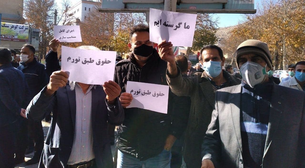 حقوق بشر در ایران – امروز یکشنبه ۲۳ آذر ماه ۱۳۹۹، در ادامه تجمعات اعتراضی روزانه شهروندان در اقصی نقاط ایران که ناشی از سوء مدیریت مسئولان در بخش های مدیریتی و تصمیمات غیر کارشناسانه آنها است جمعی از بازنشستگان تحت پوشش سازمان تامین اجتماعی در شهرها و استانهای « خرم آباد، خوزستان، یزد، تهران، مشهد، ایلام، کرج، اراک، تبریز، خراسان شمالی، گیلان »، کارگران واحد خدمات کشت و صنعت نیشکر هفت تپه، کارگران واحد پاکبانی شهرداری استان ایلام، کارکنان پیمانی شاغل در اداره کل پیشگیری و رفع تخلفات شهرداری اصفهان، پذیرفته شده آزمون ورودی در آموزش و پرورش، فرهنگیان خرید خدمت سال ۱۳۹۳، جمعی از کسبه استان چهارمحال و بختیاری، با برگزاری تجمعات اعتراضی نسبت به نقض گسترده حقوق شهروندیشان اعتراض کردند.