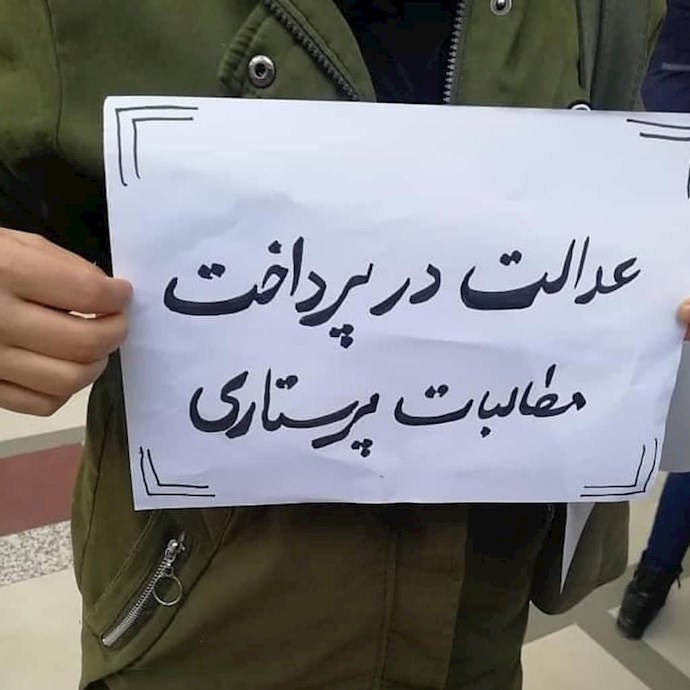بر روی پلاکاردهایی که این پرستاران در دست گرفته بودند نوشته شده بود: « حقوقمان را بدهید »، « عدالت در پرداخت مطالبات پرستاری »، « حق ما را پس بدهید » و « اعتراض داریم ».
