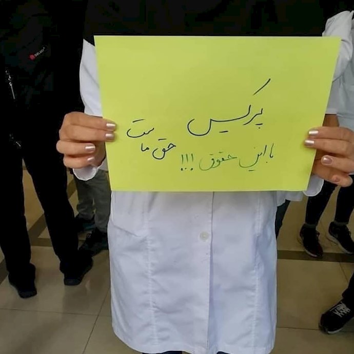بر روی پلاکاردهایی که این پرستاران در دست گرفته بودند نوشته شده بود: « حقوقمان را بدهید »، « عدالت در پرداخت مطالبات پرستاری »، « حق ما را پس بدهید » و « اعتراض داریم ».