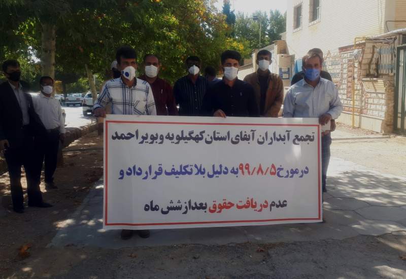 به گزارش حقوق بشر در ایران به نقل از کبنا نیوز، روز دوشنبه ۵ آبان ماه ۱۳۹۹، جمعی از آبداران استان کهگیلویه و بویراحمد، در اعتراض محقق نشدن وعده های مسئولان آبفا در مقابل استانداری کهگیلویه و بویراحمد تجمع اعتراضی برگزار کردند.