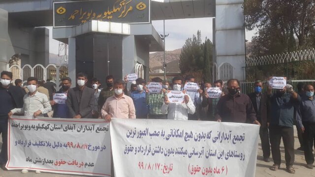 براساس اعلام این شهروندان معترض: “۲۰۰ نفر آبدار در سطح استان کهگیلویه و بویراحمد هر ۶ ماه یکبار پس از اینکه تجمع اعتراض آمیز انجام می دهیم حقوق ما پرداخت می شود. یکی دیگر از مشکلات ما قرارداد منعقد شده با ماست.”