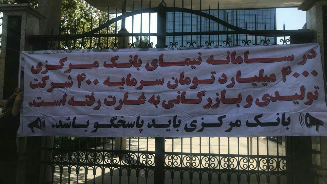 مالباختگان این سامانه ارزی با نسب پلاکاردی به قسمتی از دیوار بانک مرکزی که بر روی آن نوشته شده بود: “در سامانه نیمای بانک مرکزی ۴۰۰۰میلیارد تومان سرمایه ۴۰۰شرکت تولیدی و بازرگانی به غارت رفته است. بانک مرکزی باید پاسخگو باشد.” به شرح وضعیت خود پرداختند.