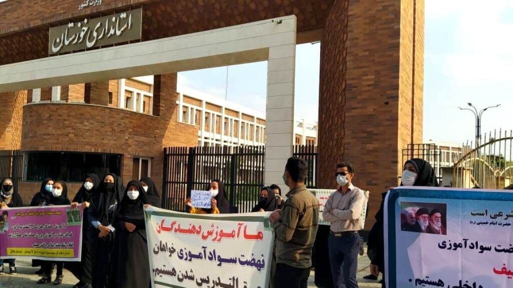 به گزارش حقوق بشر در ایران به نقل از ایلنا، امروز سه شنبه ۲۷ آبان ماه ۱۳۹۹، جمعی از مربیان « آموزش یاران » نهضت سوادآموزی شاغل در واحدهای آموزشی استان خوزستان در اعتراض به ندارم بلاتکلیفی شغلی در مقابل درب ورودی استانداری خوزستان تجمع اعتراضی برگزار کردند.