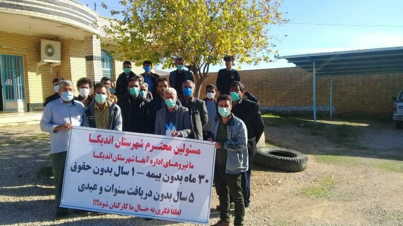 این کارگران معترض با تجمع در محوطه شرکت آب و فاضلاب روستایی شهرستان اندیکا در در دست گرفتن پلاکاردی به پرداخت نشدن ۳۰ ماه حقوق بیمه، یک شال حقوق معوقه و همچنین پرداخت نشدن ۵ سال سنوات خدمت و عیدی نارضایتی خود را شرایط کاری شان ابراز کردند.