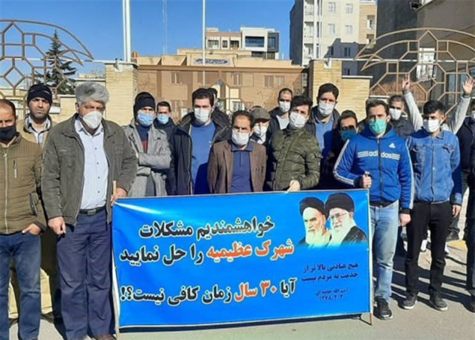به گزارش حقوق بشر در ایران به نقل از تسنیم، امروز سه شنبه ۹ دی ماه ۱۳۹۹، مالکان زمین های شهرک عظیمیه واقع در منطقه ۳ شهرداری استان قزوین در اعتراض به فقدان امکانات زندگی از قبیل آب، برق و همچنین عدم صدور مجوز ساخت و ساز برای آنها در مقابل ساختمان این شهرداری تجمع اعتراضی برگزار کردند.