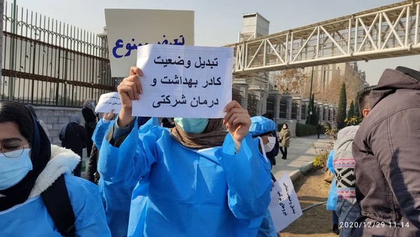به گزارش حقوق بشر در ایران به نقل از ایلنا، امروز سه شنبه ۹ دی ماه ۱۳۹۹، کارکنان شرکتی شاغل در مراکز بهداشت و درمان دانشگاه علوم پزشکی در اعتراض به محرومیت از حق امنیت شغلی در مقابل ساختمان مجلس تجمع اعتراضی برگزار کردند.