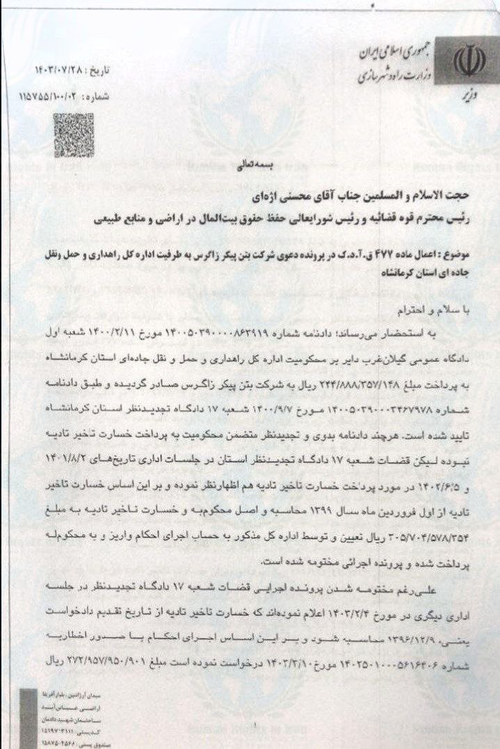 پرونده شرکت بتن پیکر زاگرس با برداشت ۲۵۰ میلیارد تومان از حسابهای راهداری، نشاندهنده فساد اقتصادی گسترده در جمهوری اسلامی ایران است. در حالی که ارتباطات سیاسی و مالی میان شرکتهای وابسته به مقامات ارشد، سیستم قضائی فاسد و عدم شفافیت در رسیدگی به پروندهها، بار دیگر سوالات جدی در خصوص اصول دادرسی عادلانه و مبارزه با فساد را مطرح کرده است، انتظار میرود که نهادهای نظارتی داخلی و بینالمللی در این خصوص اقداماتی جدی و مؤثر انجام دهند.