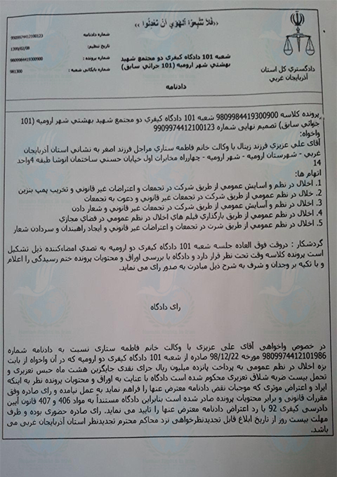 - بیشتر بخوانید: احضار علی عزیزی, فعال ملی مدنی ساکن ارومیه به جلسه دادرسی