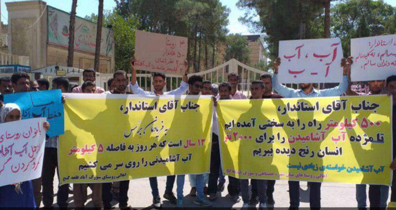 جمعی از اهالی روستای قلعه گنج کرمان امروز در برابر استانداری کرمان تجمع اعتراضی برگزار کردند تجمع کنندگان نسبت به نداشتن آب سالم و وعده های بدون عمل مسئولان دست به این تجمع اعتراضی زدند.