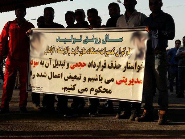 شماری از کارگری پالایشگاه آبادان خواستار برخورداری از قرارداد سود مدیریتی هستند.