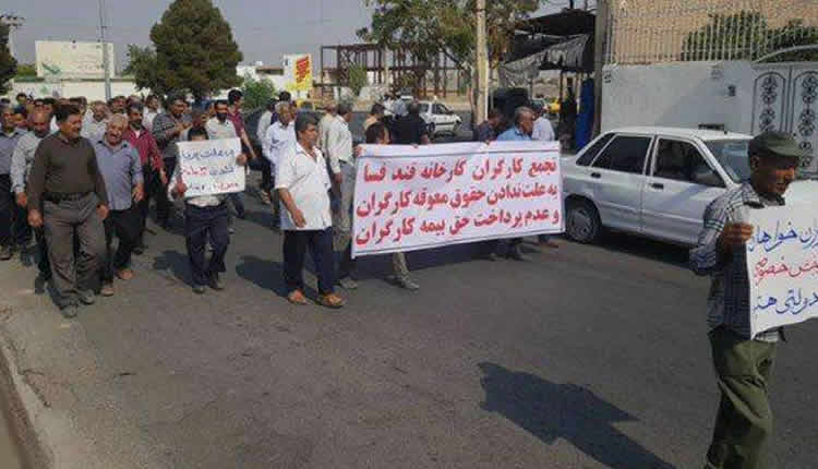 یکی از کارگران این کارخانه گفت: با وساطت معاون فرماندار شهرستان فسا یک ماه از حقوق کارگران در تیرماه پرداخت شد و مالک کارخانه قول داد که ۳۱ تیرماه نیز حقوق اردیبهشت و خردادماه را واریز کند اما به قول خود عمل نکرد.