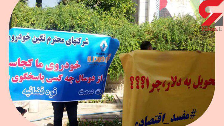 معترضان به علت عدم تحویل خودرو بعد از ۲.۵ سال از ساعت ۱۰ صبح با در دست داشتن بنرهای اعتراضی تجمع کردند.