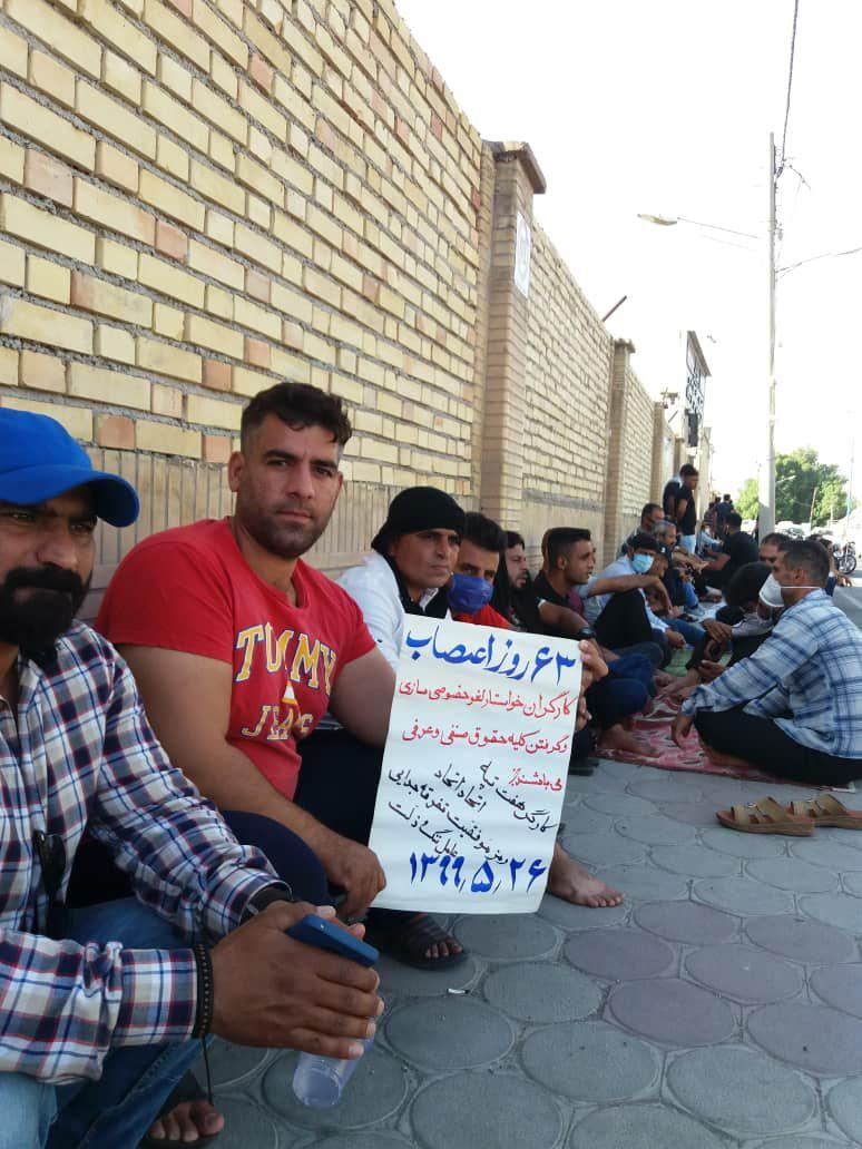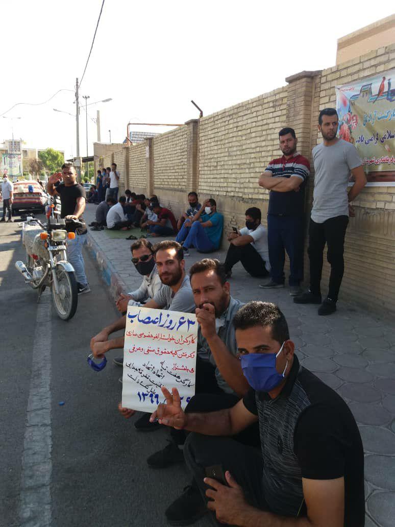 به گزارش حقوق بشر در ایران بنقل از سندیکای کارگران نیشکر هفت تپه, امروز یکشنبه ۲۶ مرداد ۱۳۹۹, شصت و سومین روز اعتصاب کارگران کشت و صنعت نیشکر هفت تپه، با حضور جمعی از کارگران این واحد صنعتی تولیدی در مقابل درب فرمانداری شهرستان شوش برگزار شد.