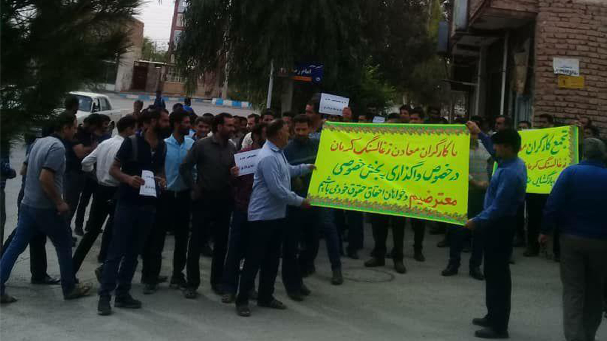 در سایر شهرستانها هم کارگران با هدف توقف واگذاری این شرکت دولتی به بخش خصوصی مقابل دفاتر ائمه جمعه کوهبنان و زرند تجمع کردند.