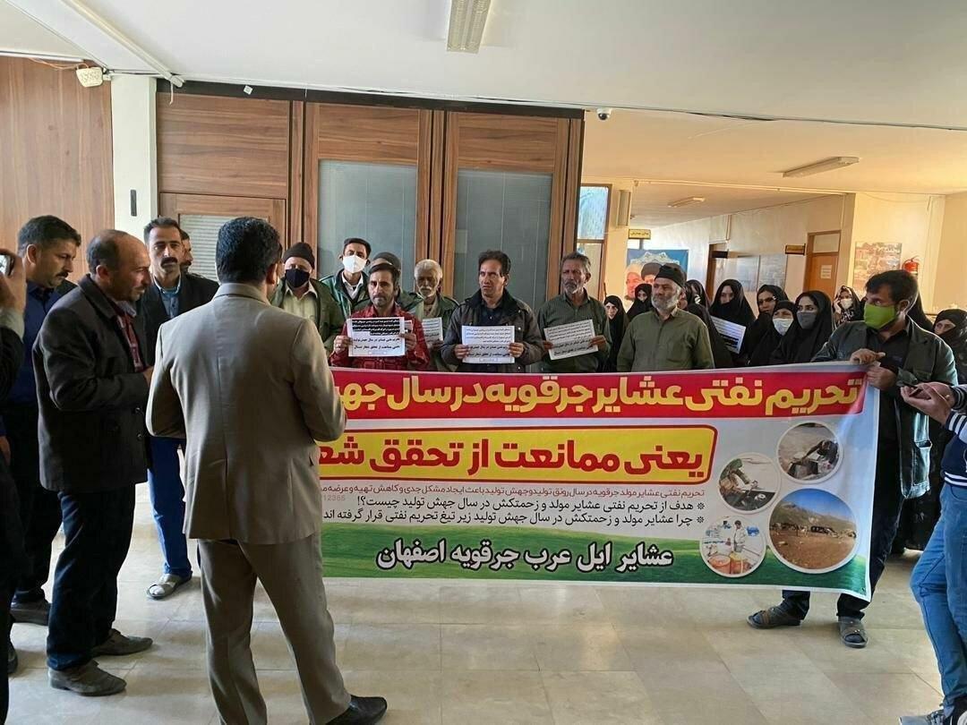 به گزارش حقوق بشر در ایران, امروز  پنجشنبه ۱۱ اردیبهشت ماه ۱۳۹۹، جمعی از عشایر نصر آباد جرقویه ساکن در استان اصفهان در اعتراض به محرومیت از حقوق شهروندی در بخشداری این روستا تجمع اعتراضی برگزار کردند.