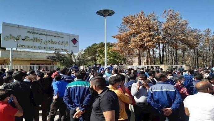تجمع اعتراضی کارگران معدن زغال سنگ کرمان