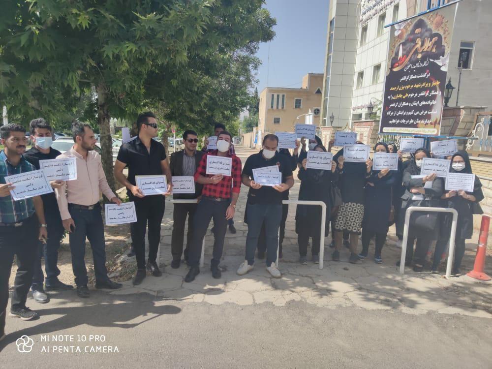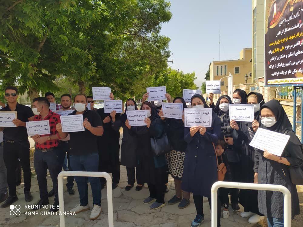 این شهروندان در جریان این تجمع اعتراضی با حمل پلاکاردهایی اعتراضی با مضامین “کرونا را شکست دادیم اما از کار بیکار شدیم” و “سزای فداکاری بیکاری نیست” اعتراض شان را نسبت به عدم استخدام در دانشگاه علوم پزشکی یاسوج پس از اتمام دوران قرارداد کاری آنها معترض شدند.