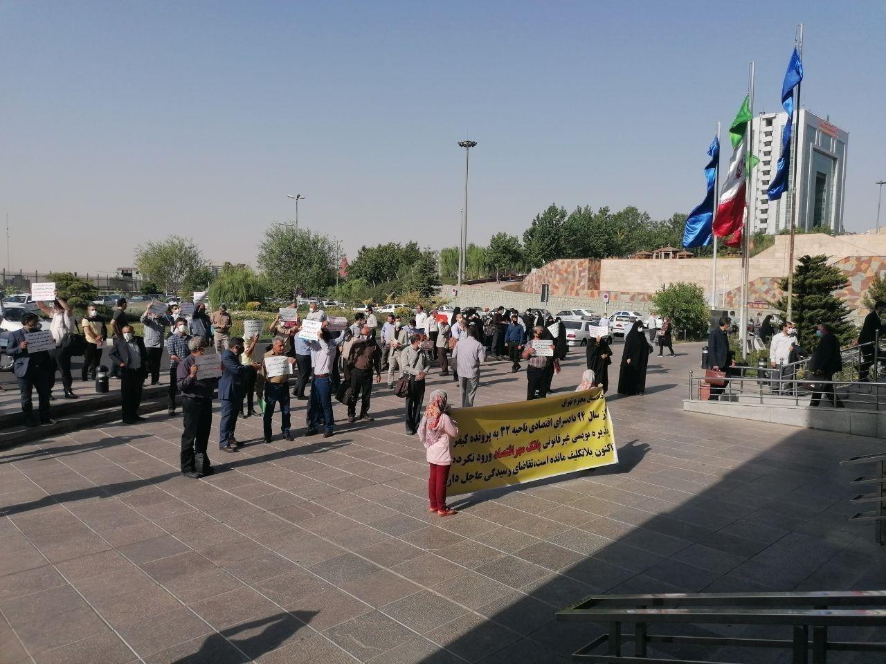 به گزارش حقوق بشر در ایران, امروز دوشنبه ۹تیر ماه ۱۳۹۹، جمعی از سهامداران بانک مهر اقتصاد, در اعتراض به رسیدگی قضائی به وضعیت پرونده پذیره نویسی این بانک که از سال ۱۳۹۴بطور بلاتکلیف رها شده است در مقابل دفتر دادستانی تهران تجمع اعتراضی برگزار کردند.
