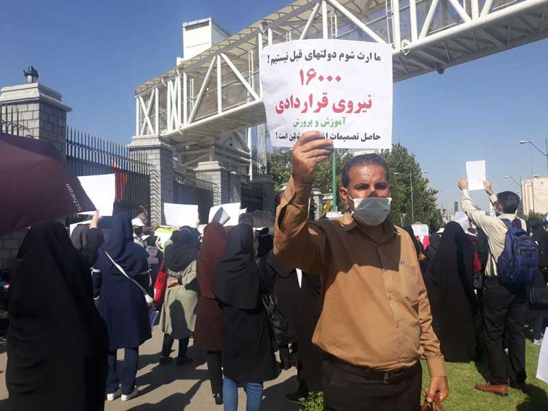 این شهروندان معترض که از شهرهای دیگر به تهران آمده بودند خواستار تبدیل وضعیت استخدامی آنها از قراردادی موقت به رسمی شدند.