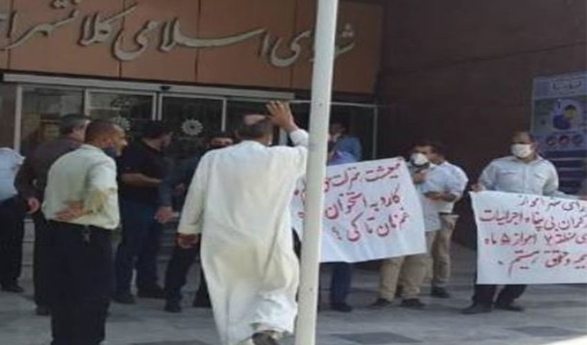 تجمع اعتراضی کارگران شهرداری منطقه ۷ اهواز